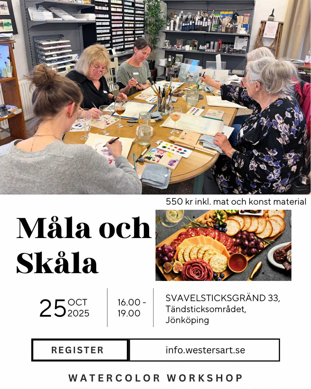 Westers Art har sålt kvalitetsmaterial åt konstnärer i hela Sverige i över 40 år med sitt tillhåll i Jönköping. I början av 2022 sålde familjen Wester företaget och vi låter Westers leva vidare genom att utveckla verksamheten bland annat genom denna nya hemsidan och nya butikslokalen på Tändsticksområdet. Vi bor nu på Svavelsticksgränd 33!